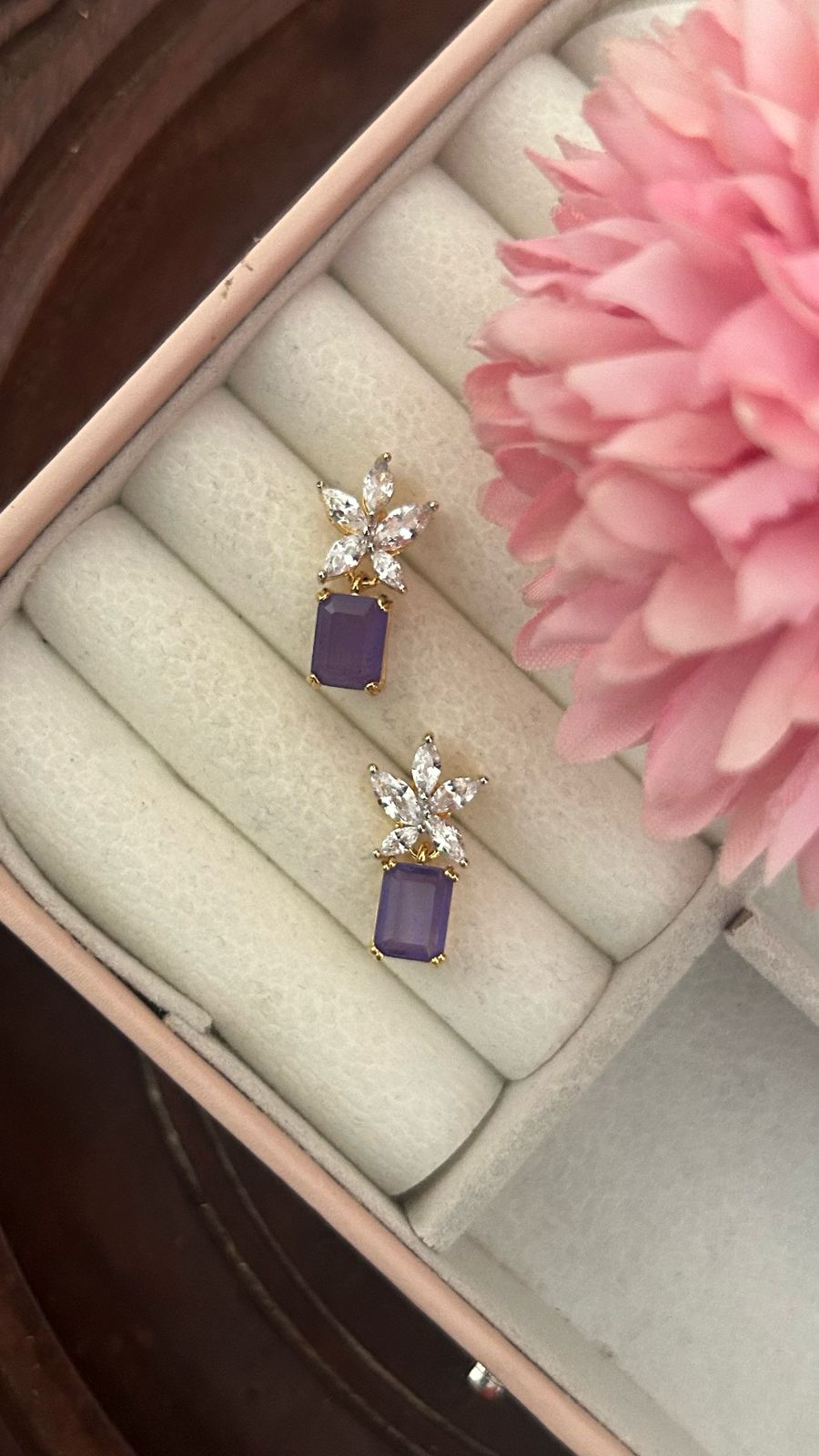 Cz stud with green hanging drop