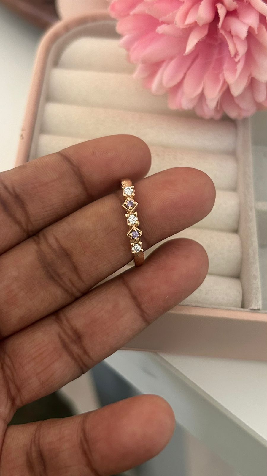 Add subtle sparkle to your style with this elegant gold plated zircon band ring, designed with alternating round and square-cut stones for a unique look. Perfect as a stackable ring, promise ring, or daily wear accessory, this minimalist band complements both casual and party outfits effortlessly. Crafted with premium finish and secure settings, it’s a timeless addition to any jewelry collection and makes a thoughtful gift for her on birthdays, anniversaries, or special occasions. Style it solo or stack with other rings for a chic layered look!