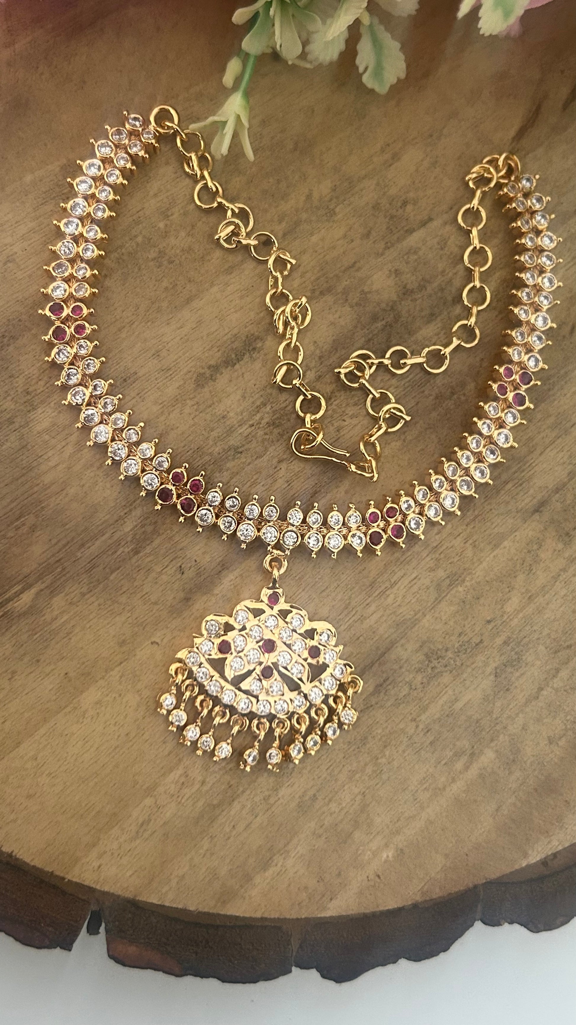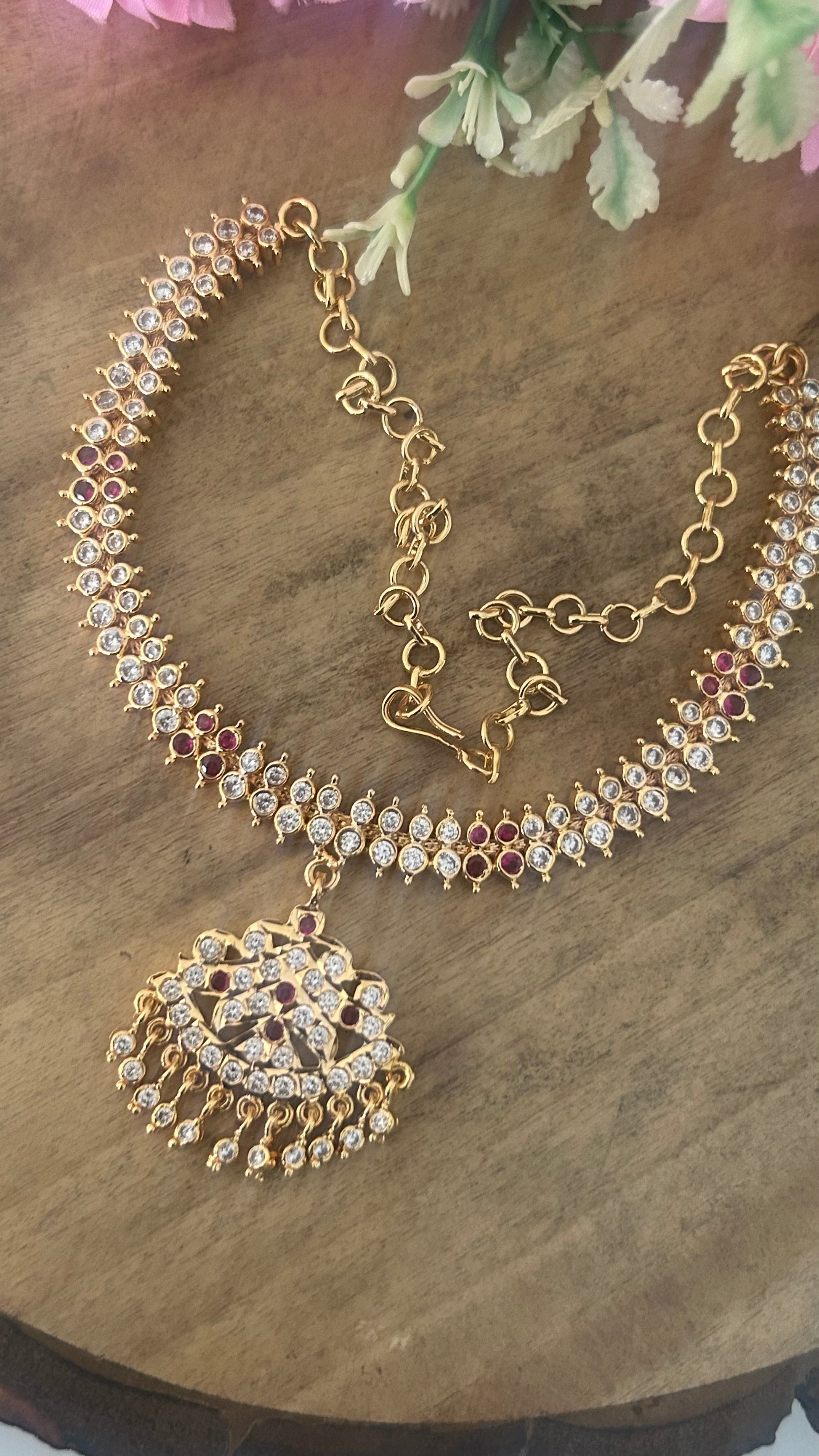 Elegant Ruby & White Stone Panchaloham Necklace with Pendant with polish
