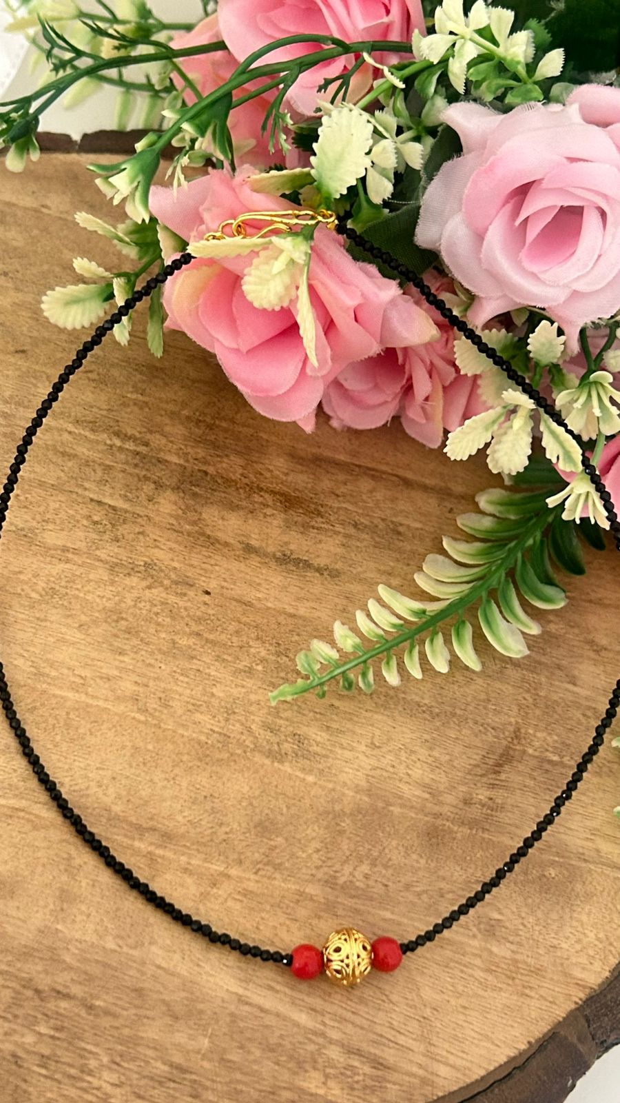 Invisible Chain Black Beads Necklace with Gold Center Bead – Stiff Neck Fit (16 Inches)