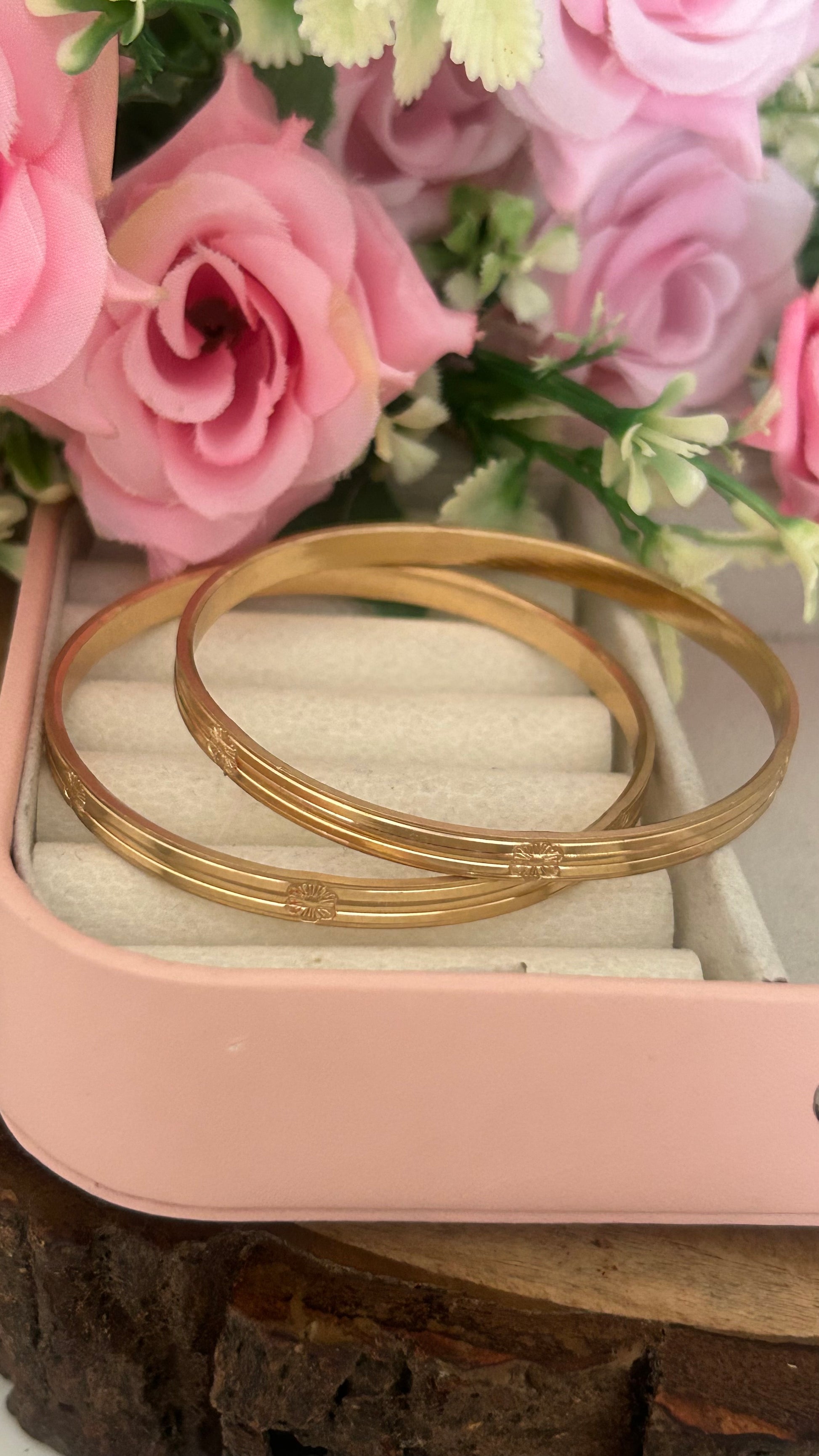 Minimal Floral Design Panchaloham Bangles unpolished