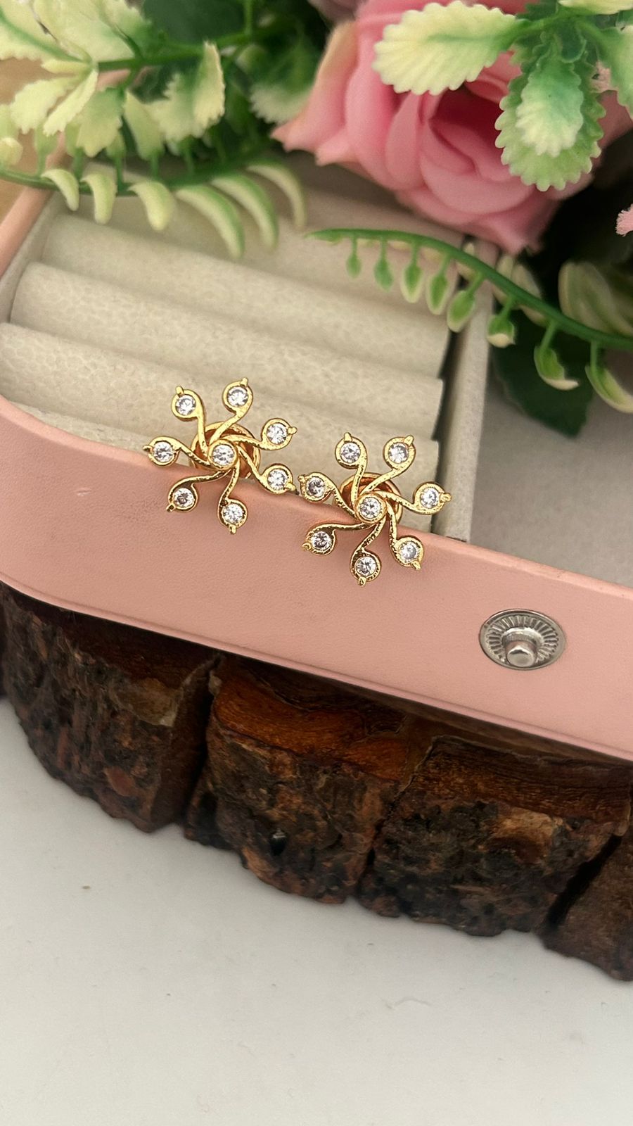 Swirl Flower Design Panchaloham Gold Polished Stud Earrings big size