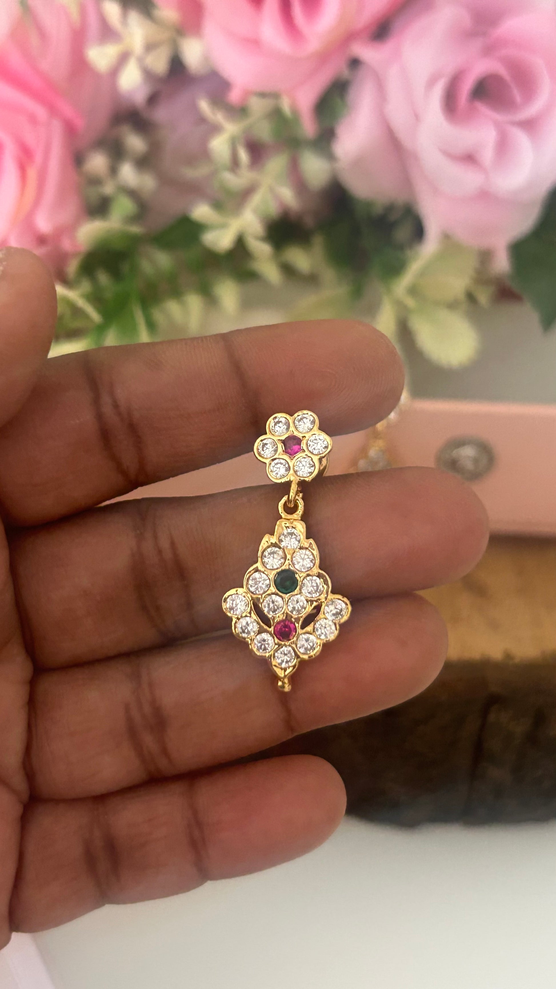 Traditional Panchaloham Drop Earrings with Ruby & Green Stone Accents