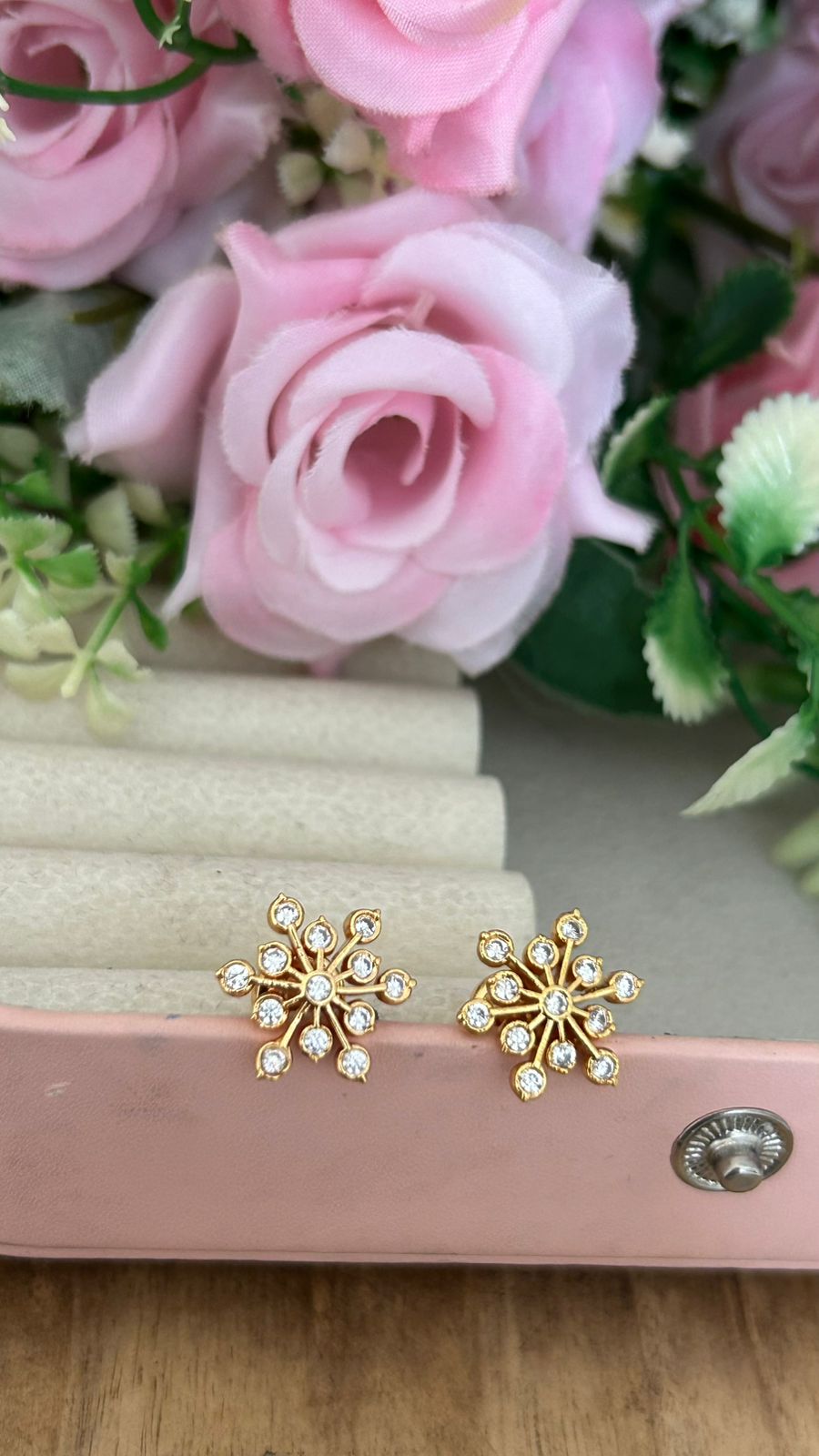 Traditional Panchaloham Floral Studs ( small size) – Big Six-Petal Design with White Stones